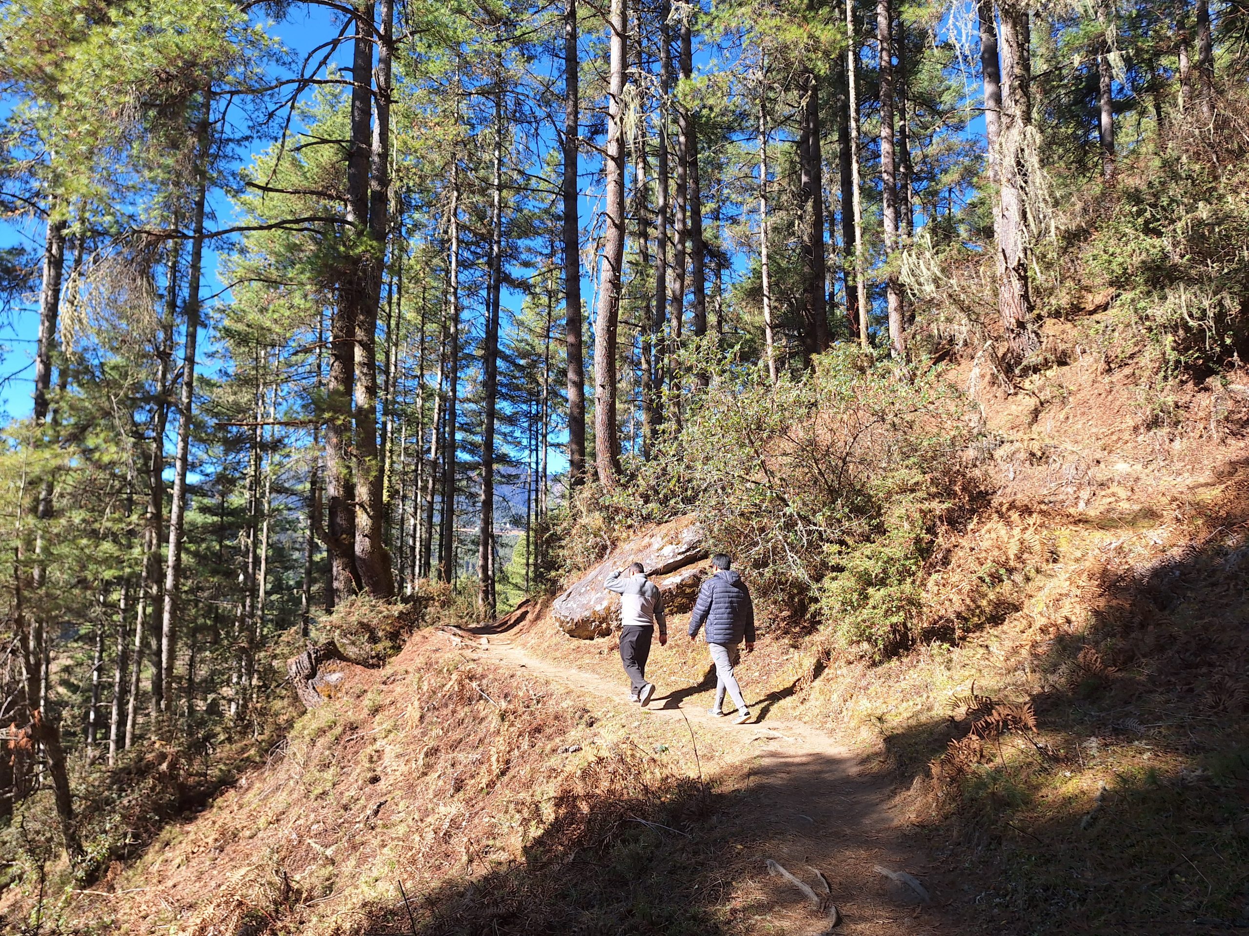 Na het ontbijt nemen we de volgwagen en rijden in een uurtje naar de Dochu La Pas (3150 meter) beroemd om zijn 108 stupa’s en versierd met duizenden gekleurde gebedsvlaggen. Vanaf de bergpas start onze wandeling door de sprookjesachtige diepgroene naaldbossen en rododendrons naar het uitkijkpunt Lungchutse Gompa (3560 meter). Hier heb je bij helder weer een uniek zicht op de besneeuwde Bhutanese Himalaya bergen, waaronder de Gangkhar Puensum, met zijn 7570 meter de hoogste niet-beklommen berg ter wereld. De totale wandeling duurt een 3-4 uur.